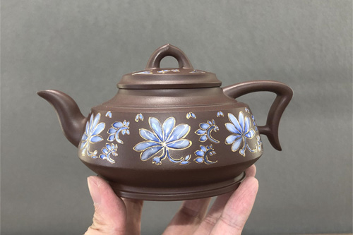 多年来,牟锦芬老师悉心钻研紫砂艺术的创新,将自己的审美与传统相接,与时代相融,随心所欲而不逾矩,系统而严谨,装饰眼光尤为独到,且整体把控能力很强。从起稿到构图、用色及形象,她都细致把握,先定型后制作,以粉泥、嵌泥等装饰工艺丰富了紫砂作品的文化内涵和美学价值。